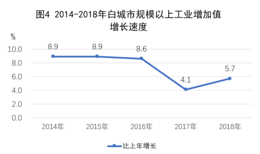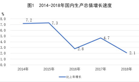 国民经济继续保持平稳增长态势。初步核算,2018年全市实现地区生产总值按可比价格计算,比上年增长2.1%。其中,第一产业增加值增长2.4%;第二产业增加值增长5.0%;第三产业增加值下降1.2%。三次产业结构为19.3:33.0:47.7。