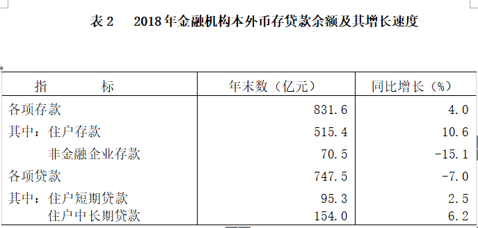 全市银行业金融机构本外币各项存款余额831.6亿元,比年初增加32.0亿元。其中,住户存款余额为515.4亿元,比年初增加49.5亿元;非金融企业存款余额为70.5亿元,比年初减少12.4亿元;广义政府存款余额为245.5亿元,比年初减少4.8亿元。金融机构本外币各项贷款余额747.5亿元,比年初减少55.9亿元。金融机构境内住户本币贷款余额249.3亿元,其中短期贷款余额95.3亿元,比年初增加2.3亿元;中长期贷款余额154.0亿元,比年初增加9.0亿元。