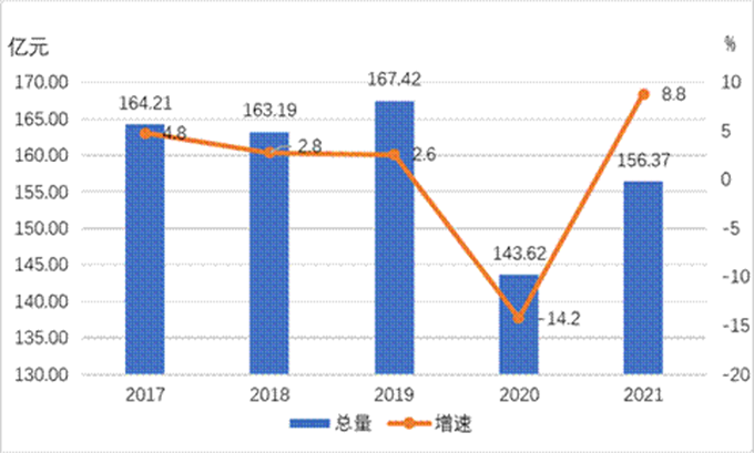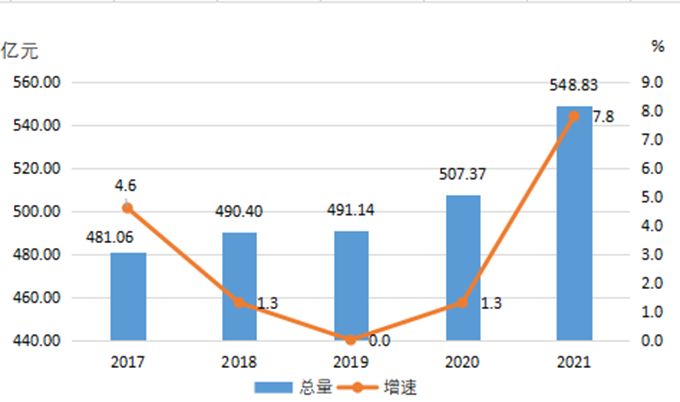 图1:2017-2021年FIFA世界杯投注网地区生产总值及其增长速度