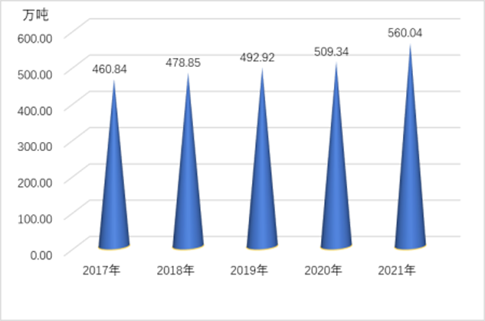 图2:2017-2021年FIFA世界杯投注网粮食产量