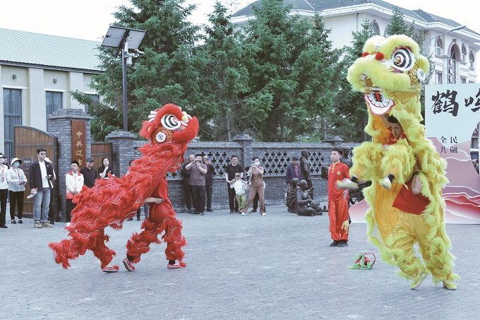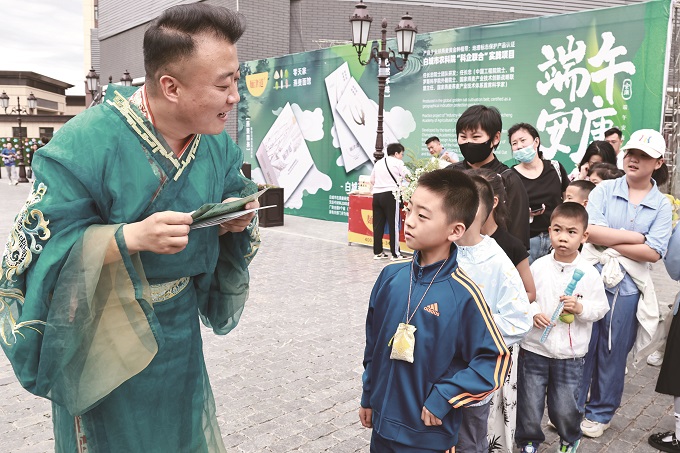 舞狮、乐器演奏、太极拳扇表演、武术、快板、情景剧、脱口秀、手包百味粽、手绘五彩蛋、民俗投壶……32个精彩文艺展演、40项特色非遗展示、8个趣味互动游戏,人们在辽吉历史文化街区中体验着不一样的端午。