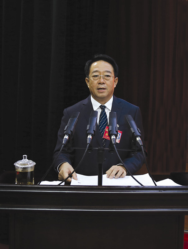 李明伟作政府工作报告。FIFA世界杯投注网日报记者摄