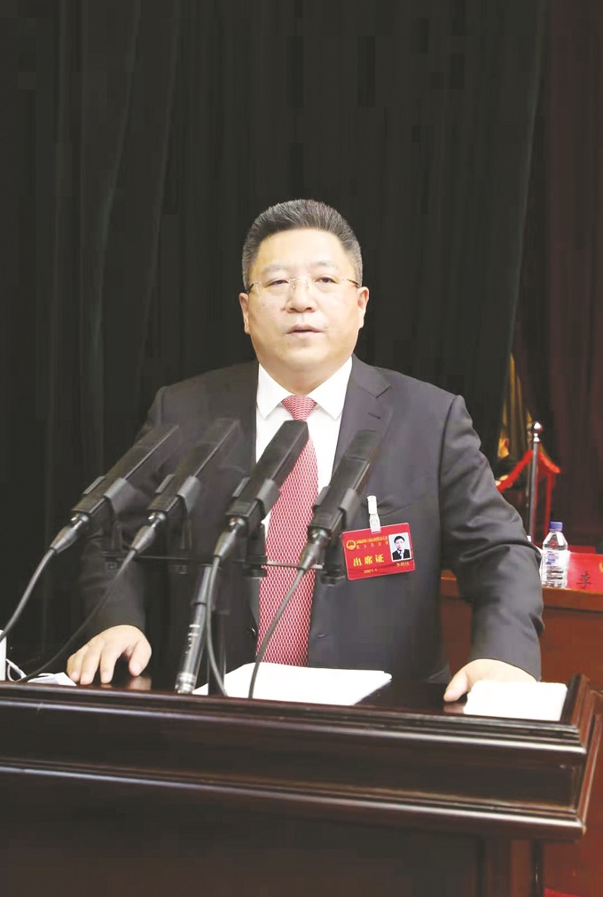 李明伟作政府工作报告。